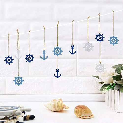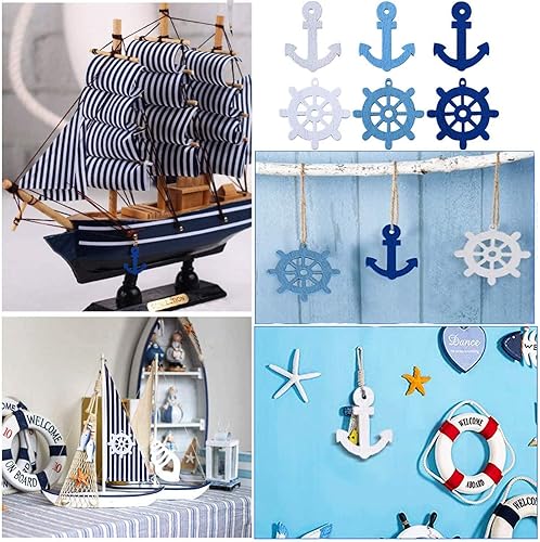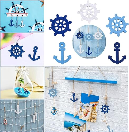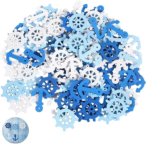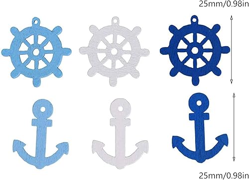 Mini Pendentifs Scrapbooking Ancres en Bois Décorations Maritimes en Bois Boutons de Décoration Nautique Boutons Décoratifs Nautiques en Bois pour Scrapbooking Bricolage Fête de Mariage 200 Pièces