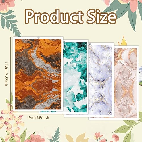 Lot de 20 feuilles de papier de transfert pour argile polymère, 4 motifs marbrés fluides, double face, feuilles de transfert jetables pour la fabrication de bijoux | Qualité d'impression vive | 15 x 9