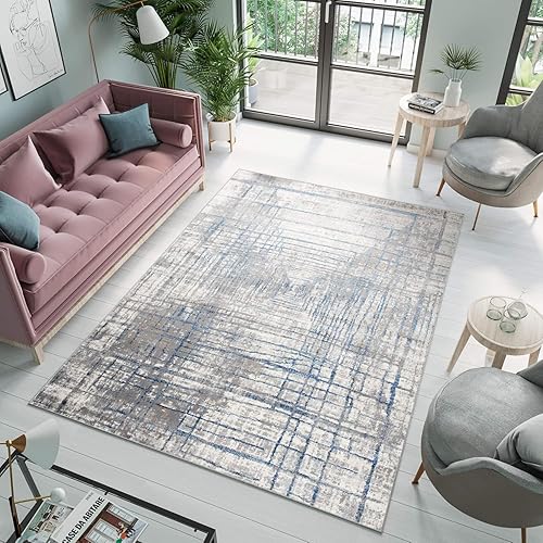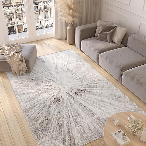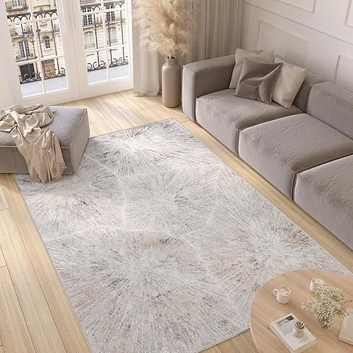 TAPISO Valley Tapis Poil Court Moderne Vintage Beige Gris Crème Moucheté Motif Abstrait Tapis Salon Chambre Adulte Salle à Manger Bureau Oeko-TEX Résistant 200 x 300 cm