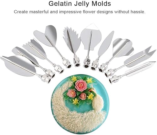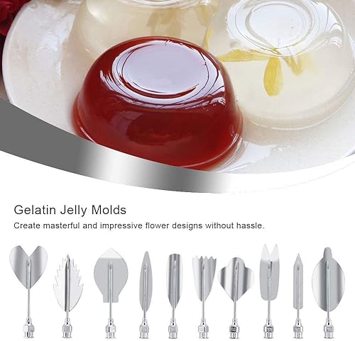 3D Gelée Gelatin Art Outils, Lot de 11 Gelatin Jelly Outils Art Gâteau Outils Jelly Décoration Outils Jelly Cake Décor Outils en Acier Inoxydable Jelly Cake Aiguilles avec Pièces Seringue