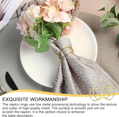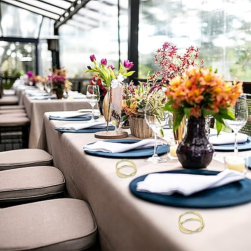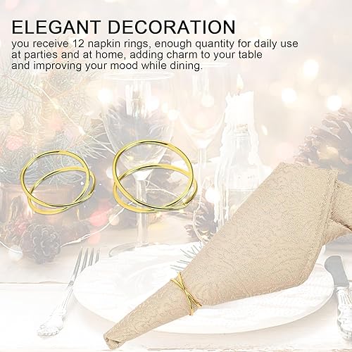 PARFCO Rond de Serviette de Table 12 Pièces Rond de Serviette Doré, Anneaux Serviette de Table, Ronds Serviettes à Double Cercle pour Fêtes, Anniversaires et Mariages
