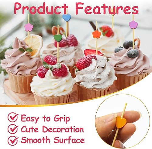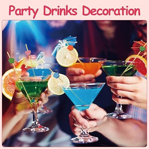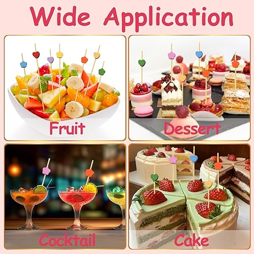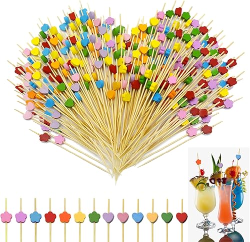 LXBCTOP 200 PièCes BâTon De Cocktail, Coeur Coloré Brochettes à Cocktail En Bois, Fleur De Prune Batons De Cocktail En Bambou Jetables, Fingerfood Pour Nourriture DéCoréE, Verre à Cocktail