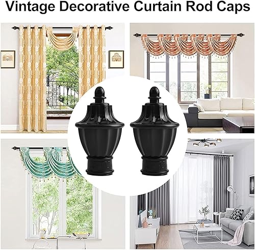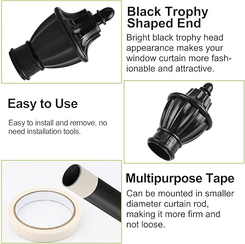 UFURMATE Lot de 6 embouts de tringle à rideaux en plastique noir - Embouts décoratifs pour tringle à rideaux de fenêtre - Convient aux tringles de 28 mm de diamètre (forme de trophée)