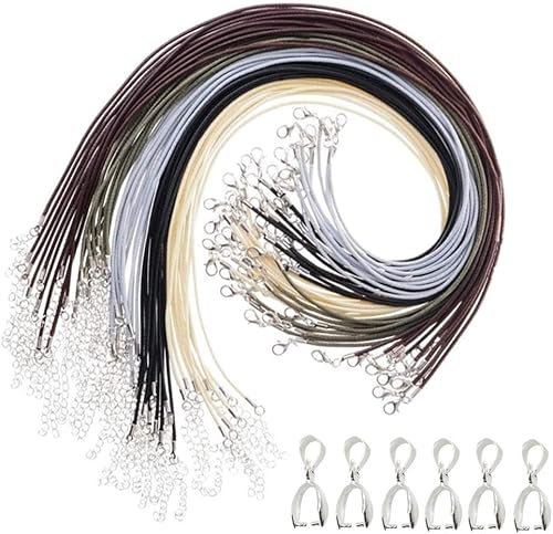 Anyasen Collier Corde de Cire pour Pendentif Fermoir Bracelet 50 Pièces Couleur Mélange Pendentif avec Fermoir 50 Pièces pour Bricolage Fabrication de Bijoux et Bracelet, 5 Couleurs