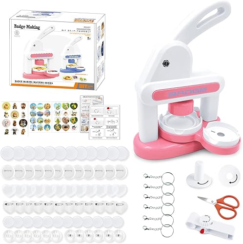 Machine a Badge 38+55+coeur,Machine à Faire des Badges Avec 85 Accessoires et Cutter Circulaire,Pin's Personnalisable,Press à Badge Convient Pour Les Fêtes, Les Cadeaux Pour Enfants, Les Adultes