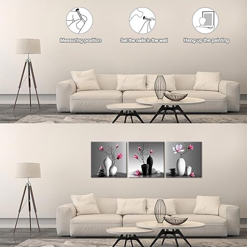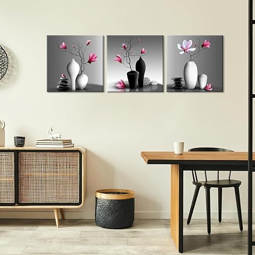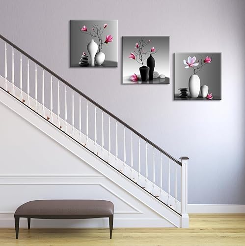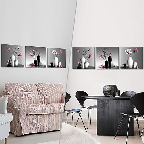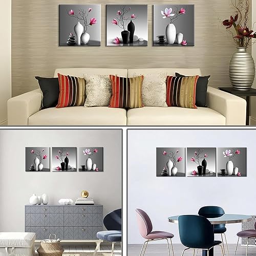 Piy Painting Impression Sur Toile En Vase à Fleurs, Art Mural En Toile Fleur, Peinture Murale Moderne, Facile à Accrocher Pour Salon Chambre à Coucher Hôtel Cuisine, 3x 58x58 cm(174x58 cm)