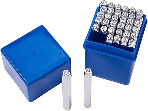 PandaHall Elite - 36 pcs DIY Scrapbook Timbres Seal en Fer Lettre Alphabet A-Z et Numero 0-8 Lettres et Esperluette & Chiffres à Frapper Chiffres Tampon Metal, Platine, 3mm