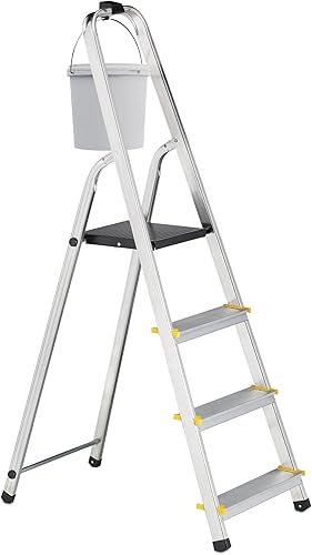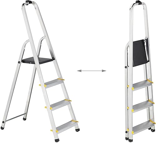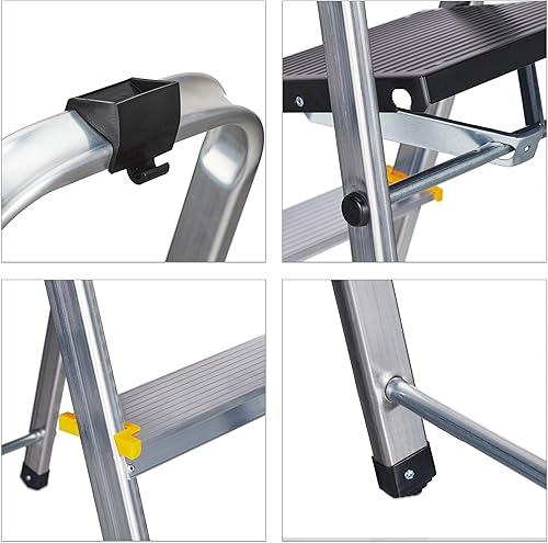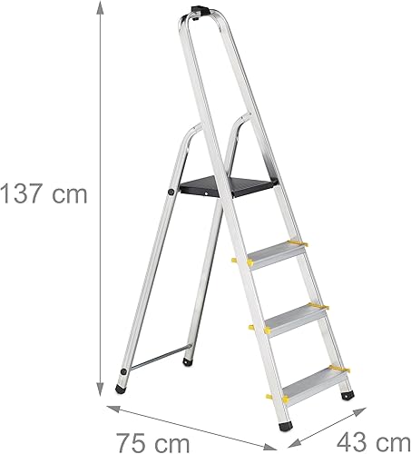 Relaxdays Escabeau Pliable, marchepied Aluminium, Jusqu’à 150 kg, étrier de Maintien, HxLxP: 137 x 43 x 75 cm, argenté