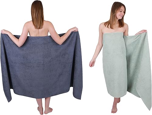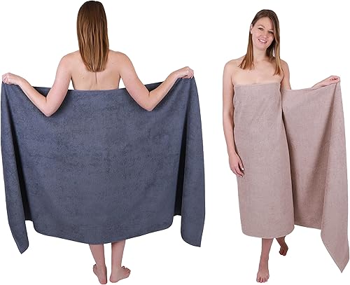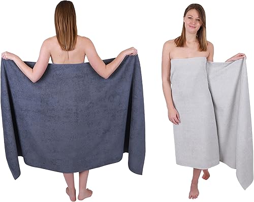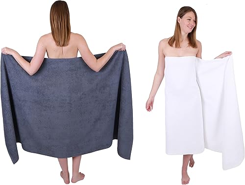 Betz 2 pièces de Serviettes de Bain XXL Berlin 100% Coton 100x200 cm (Gris foncé - Graphite)