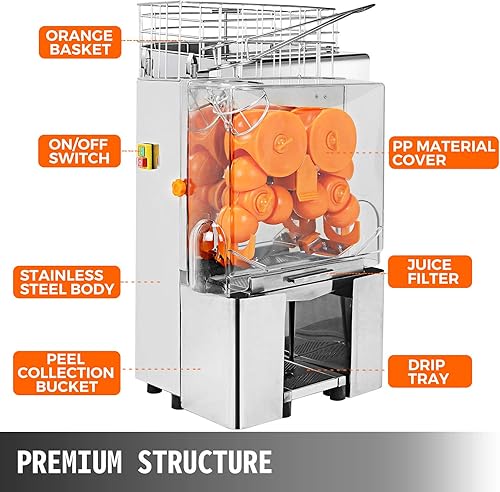 VEVOR Extracteur de jus 50,8x50,8x88,9cm,Presse-Agrumes Commerical 20 oranges/min,Centrifugeuse en Acier Inoxydable 120W,presser rapidement le jus d'orange/grenade/citron