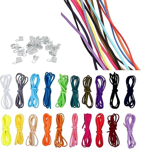 Lot de 20 cordons en cuir plat de 3 mm - 20 m (20 x 1 m) - Avec fermoir - Pour bricolage, bracelet, collier, cadeau, bijoux, artisanat