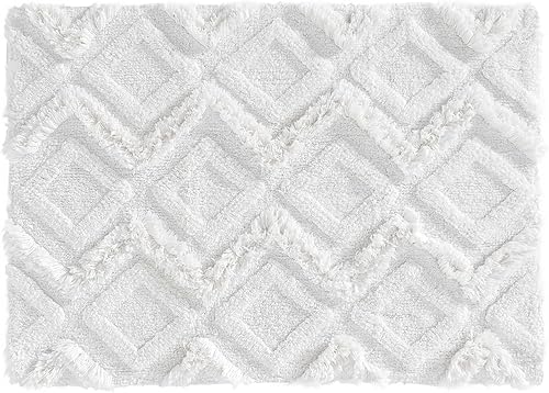 Douceur d'Intérieur, Tapis de Bain (50 x 80 cm) Minatis Blanc/Blanc, Coton Jacquard