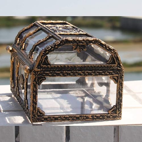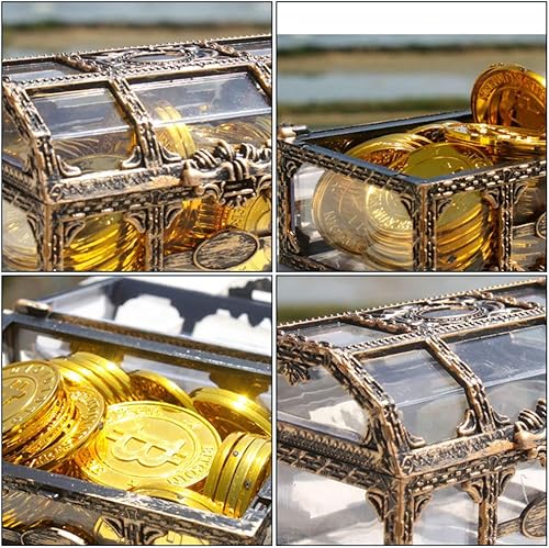 Calayu Petit coffre au trésor - En plastique transparent - Pour la chasse au trésor pirate - vintage - 8 x 10,5 x 6,5 cm.