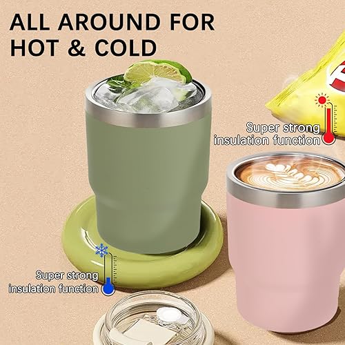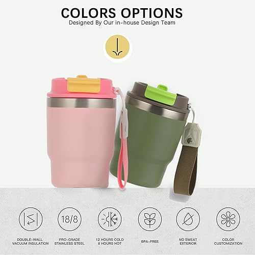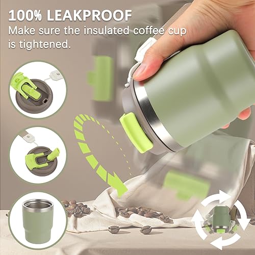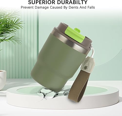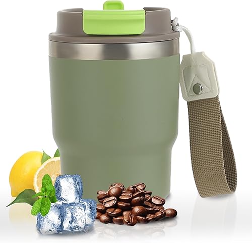 Mug Isotherme – thermos cafe – Tasse de voyage avec paille – couvercle à double usage – design épaissi et anti fuite, idéal pour le café et le thé en déplacement, 350 ml (Vert)