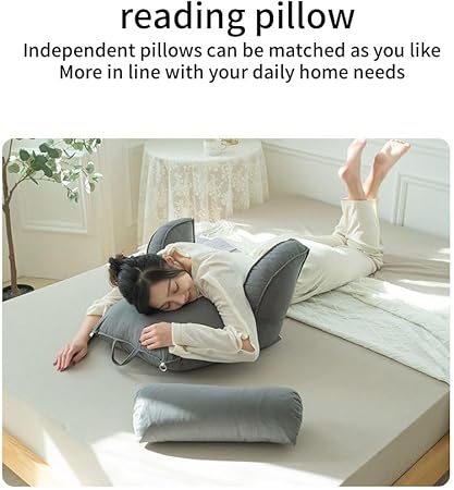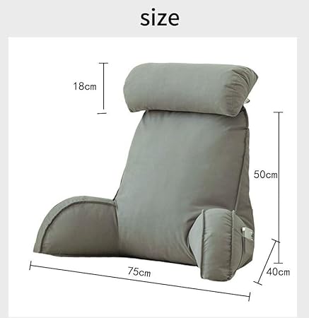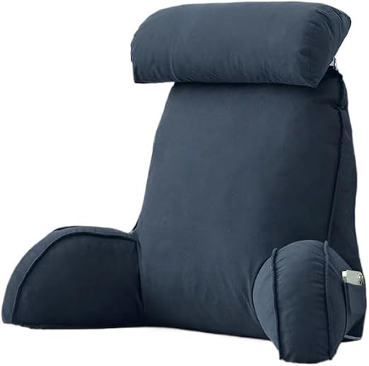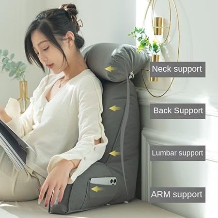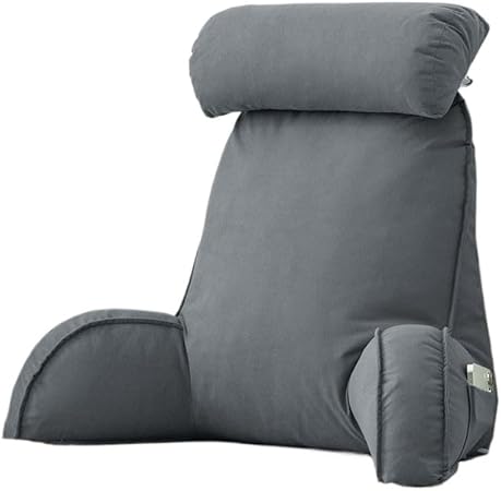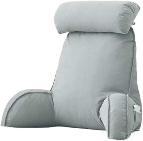 Coussin de lecture avec appuie-tête amovible et poche latérale – Coussin de chaise de lit avec accoudoirs pour soutien lombaire/cou, coussin ergonomique pour s'asseoir dans le lit, le canapé, le