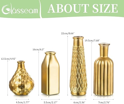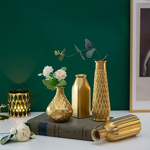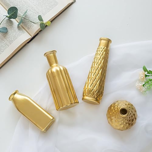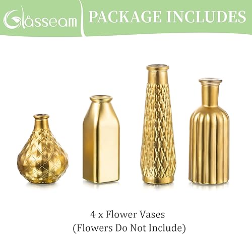 Vase En Verre Doré Pour Les Fleurs, Glasseam Lot De 4 Vases à Fleurs Petits Vases En Verre Modernes Vases Décoratifs Dorés Pour La Décoration d'Intérieur Esthétiques Pour Les Centres Table Dans Salons