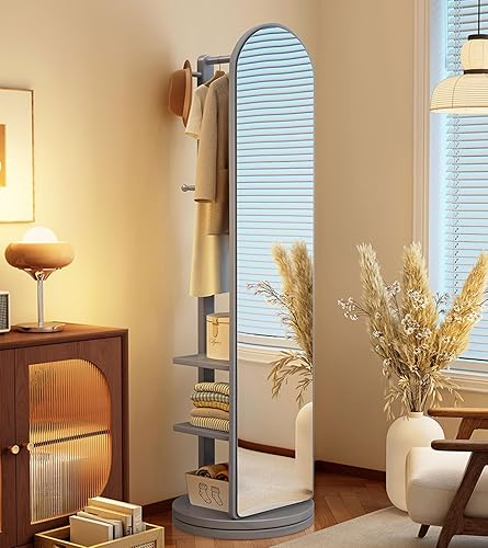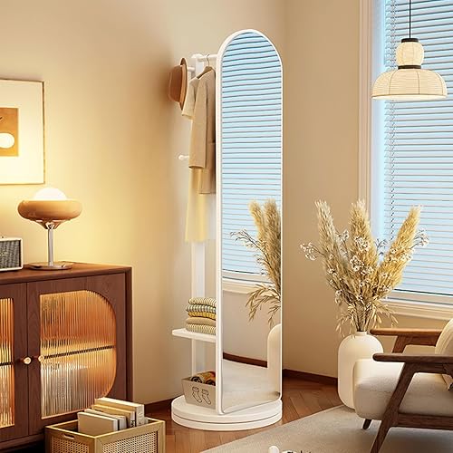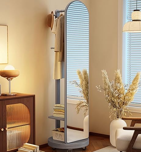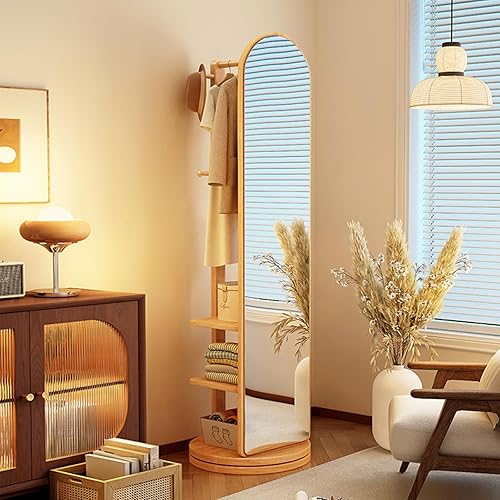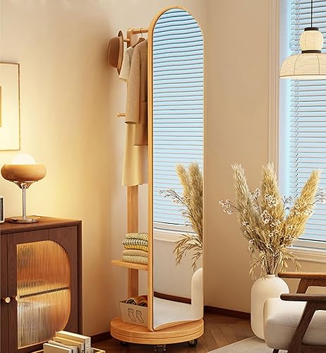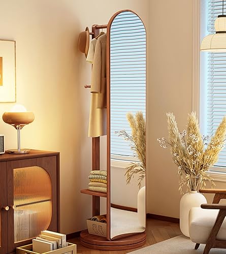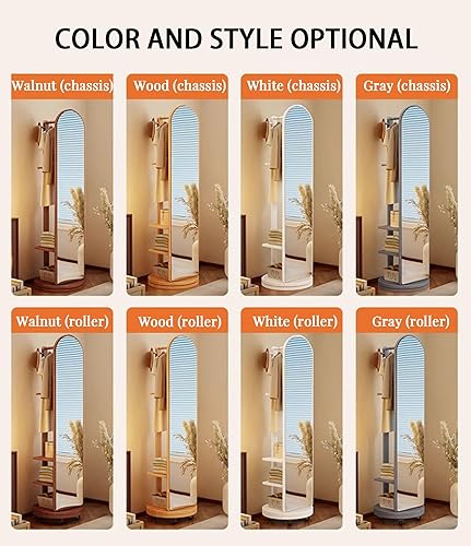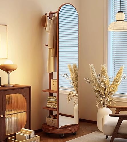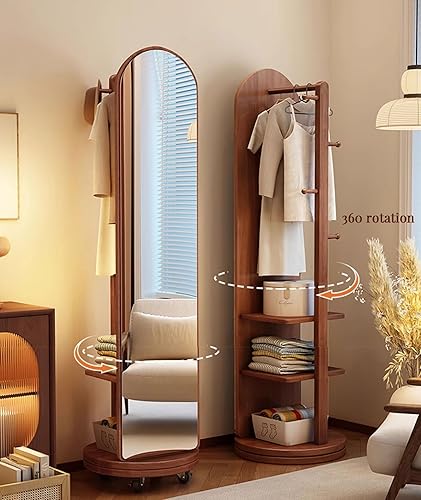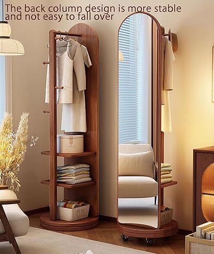 Zickdom Miroir de Sol sur Toute la Longueur, Miroir Complet sur Pied, Grand Miroir pivotant à 360° avec Porte-Manteau, Miroir Multifonctionnel pour Salon, Chambre à Coucher W-50cm Walnut (Roller)