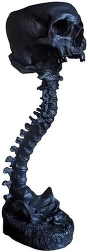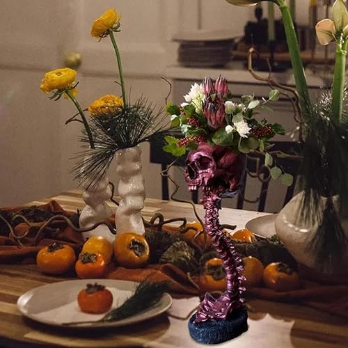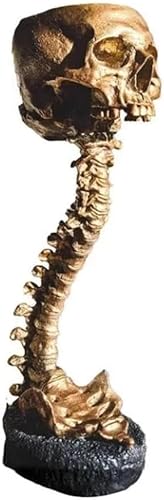 Fivetwofive Ensemble de Jardinière et Support de Colonne Vertébrale en Résine, Pot de Crâne en Polyrésine, Décoration d'halloween Rétro Tête de Crâne Humain Fleur Doré