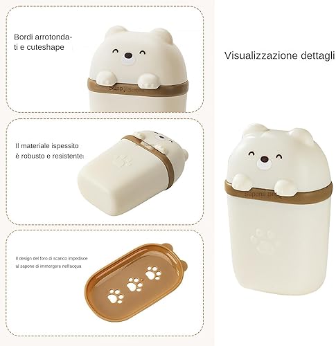 Conteneur de barre de shampooing de voyage, étui de voyage pour support de barre de shampooing - Étui de shampooing portable en forme d'ours mignon | Avec étui de barre de lavage avec fo