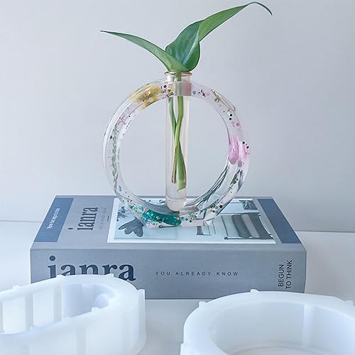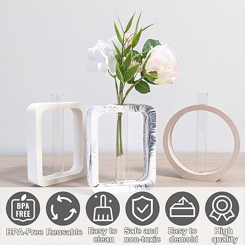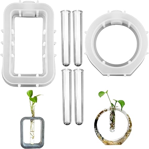 Lot de 2 moules en silicone avec 4 tubes à essai en acrylique - Moule à fleurs - Vase hydroponique - Moule en silicone - Vase en résine époxy - Pour plantes hydroponiques, boutures, fabrication de