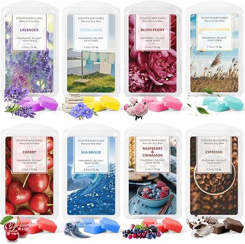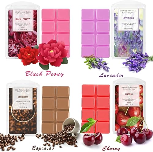 LA BELLEFÉE Fondants de Cire Parfumées Tartelettes Cire de Soja Naturelle pour Brûle Parfum, 48 Cubes Totaux