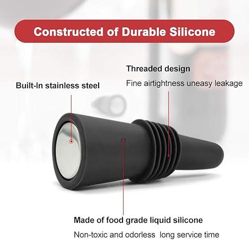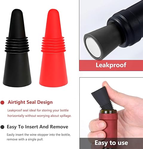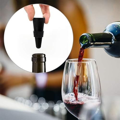 AFCJLTO Lot de 6 bouchons de vin, en silicone réutilisables,Bouchon Bouteille Vin pour bouteille de boisson avec bouchon en liège Pour conserver le champagne et la bière (rouge, noir)