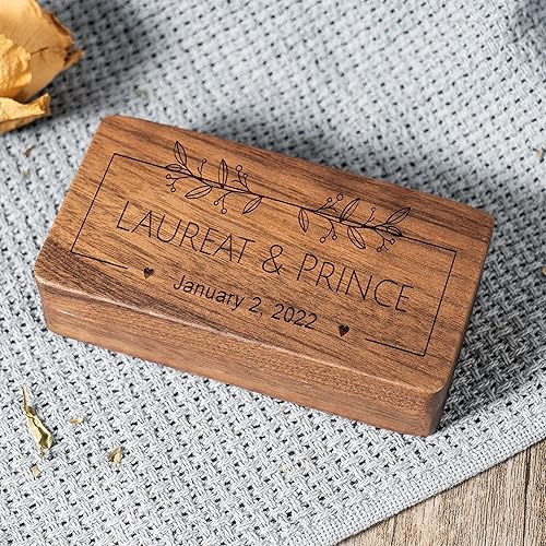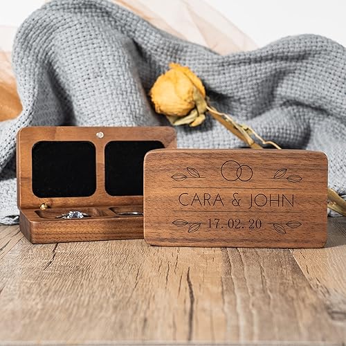 Boîte à bagues en bois gravée personnalisée, boîte à bagues double carrée pour marié, boîte à bagues personnalisée pour proposition de mariage