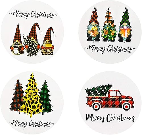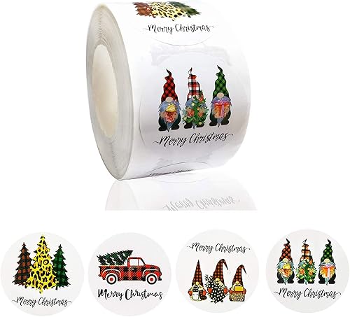 Lot de 500 autocollants de Noël ronds en forme de gnome, camion, arbre pour emballage cadeau, emballage cadeau, boîte à bonbons, étiquettes de sceau, étiquettes de décoration, autocollants de Noël