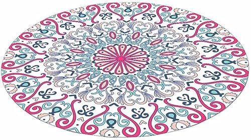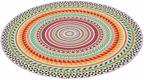 Tapis Rond Lavable en Machine, Morbuy Style Nordique Interieur Anti Slip Chambre à Coucher Salon Tapis d'Entrée Absorbant Antidérapant - Impression de Mandala Boho (Couleurs Arc-en-Ciel,80cm)