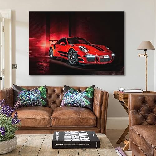 Poster de voiture de sport pour Porsche 911 GT3 RS Super Car Peinture décorative sur toile murale et art pour chambre à coucher familiale, 50 x 75 cm