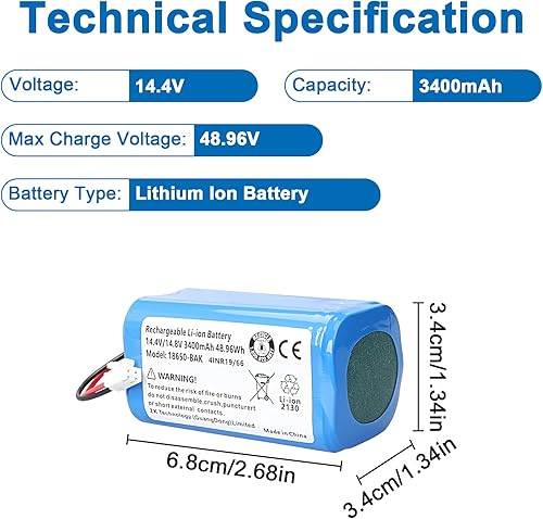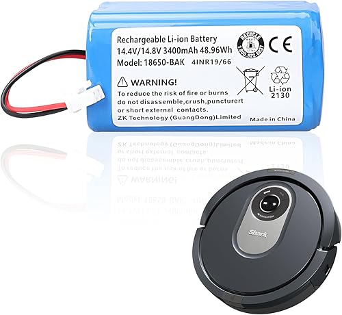 Batterie de Rechange Li-ION MXJFYY 14,4 V 3400 mAh 48,96 Wh Compatible avec Le Robot Shark ION RV1001AE, R75, R85, S87, RV751, RV1000, RV2001 RV2001WD, R3Z, R4Z (Pas Tesvor X500)