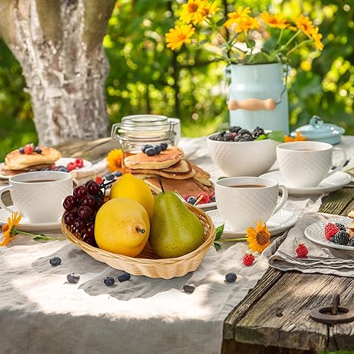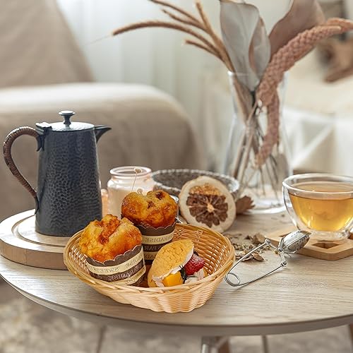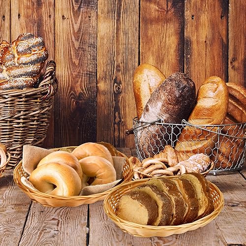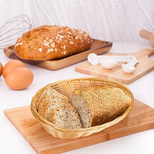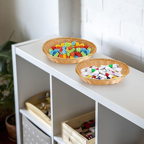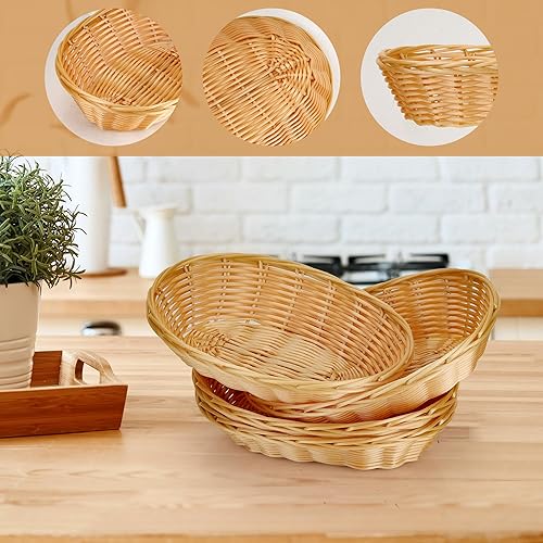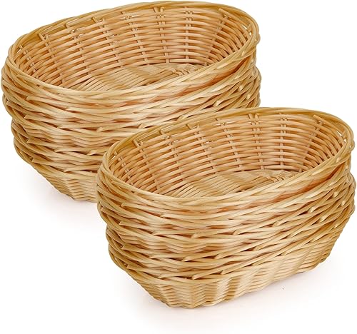 Aramanara Lot de 12 petits paniers à pain ovales tissés en plastique, 22 x 17 x 6 cm, panier de service imitation rotin pour cuisine, restaurant, centre de table