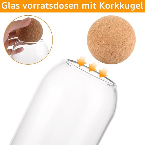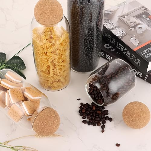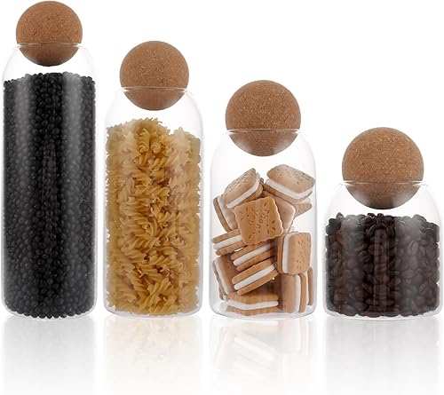 LDXDRU Lot de 4 bocaux de conservation en verre avec couvercle en liège 500 + 800 + 1000 + 1300 ml - Bocaux de conservation hermétiques en verre - Pour la cuisine, les biscuits, le café, le sucre, les