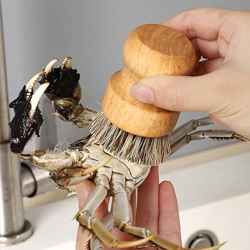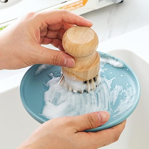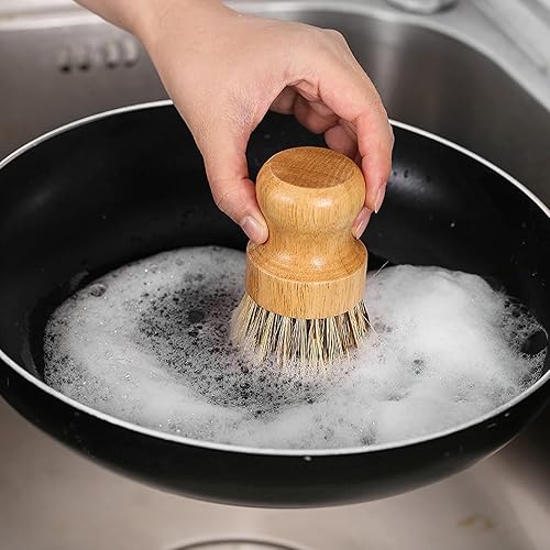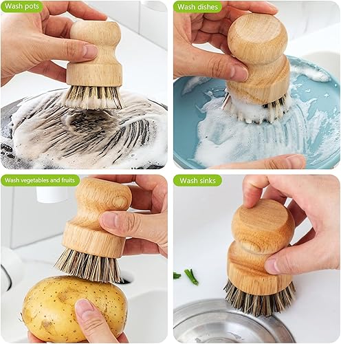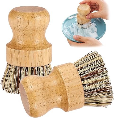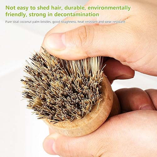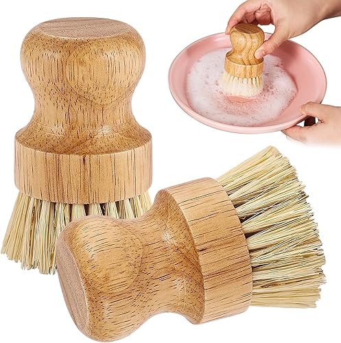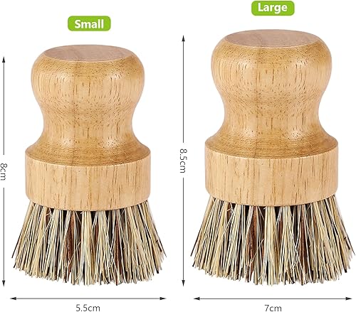 Lot de 2 brosses à vaisselle rondes en bambou naturel avec fibre Union et fibre Tampico pour nettoyer les pots, poêles et légumes (B, M)