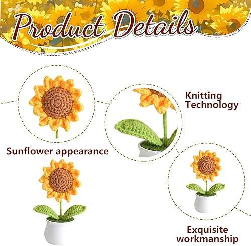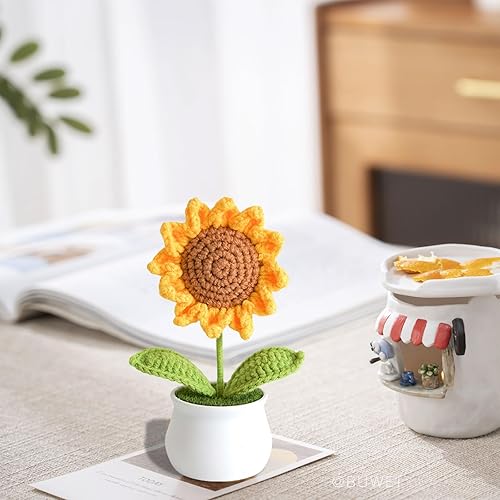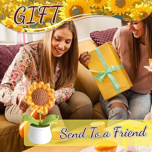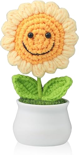 GlamRays Fleurs en crochet - Tournesols artificiels pour bureau, voiture, tableau de bord, cadeaux rires pour femmes, cadeaux d'anniversaire de motivation