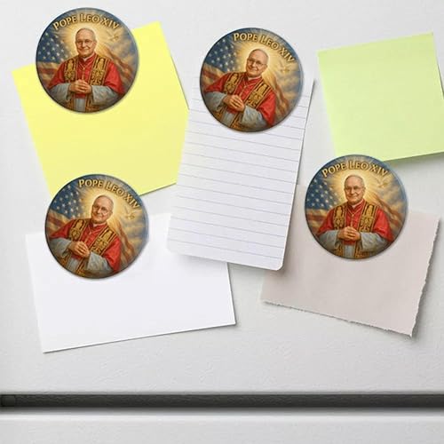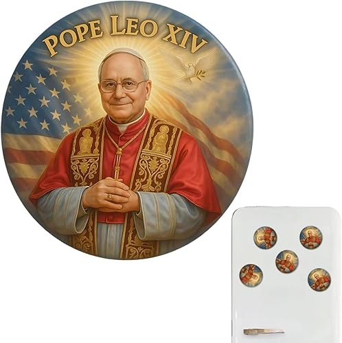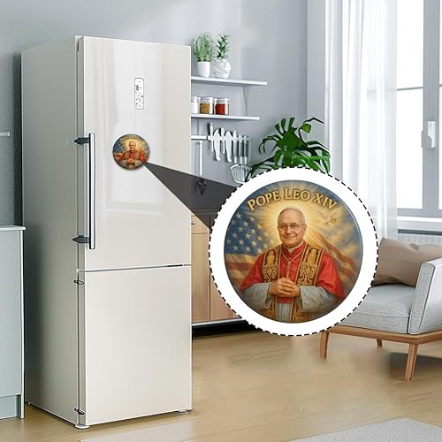 Aimant de réfrigérateur commémoratif du pape Léon XIV Robert Francis Prevost Vatican - 14e portrait divin - Souvenir religieux rond - Souvenir religieux - Souvenir catholique - Souvenir catholique