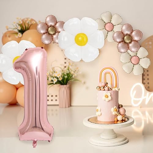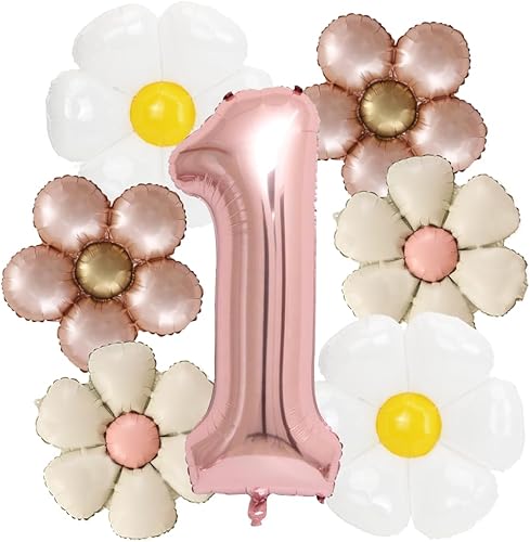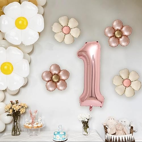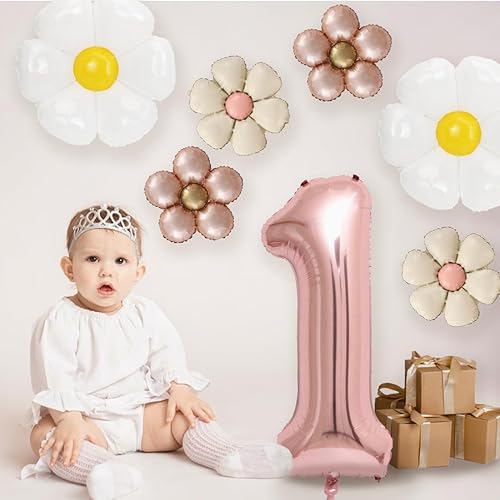 Décoration anniversaire 1 ans fille, ballon 1ème anniversaire, décoration 1ème anniversaire fille avec ballon aluminium marguerite