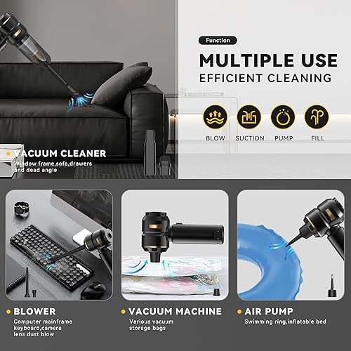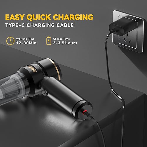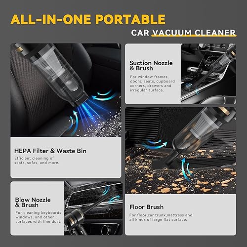 Bemkia Aspirateurs à Main,19000Pa Aspirateur Voiture Puissant sans Fil,Aspirateur de Table à 3 Vitesses avec Moteur sans Brosse,Mini Aspirateur pour Voiture Maison Bureau-Noir