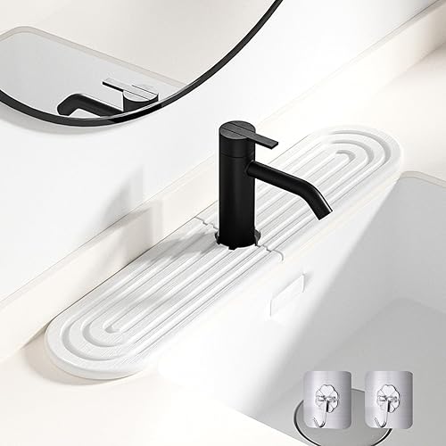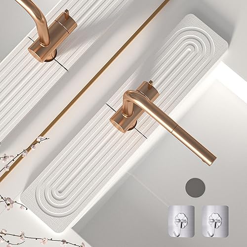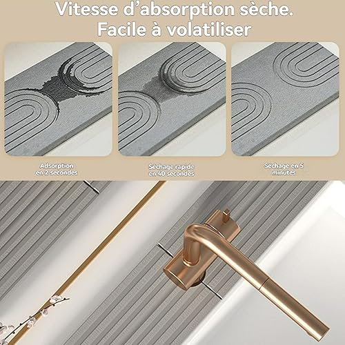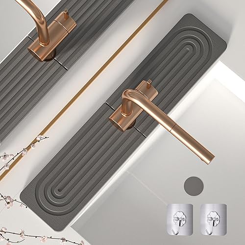 Knubbuf Contour de Robinet Absorbant, Tapis Robinet Absorbant, Pierre absorbante evier, Tapis de Robinet pour évier de Cuisine, séchage Rapide, Super Absorbant (A-Gris, 60 * 10cm)