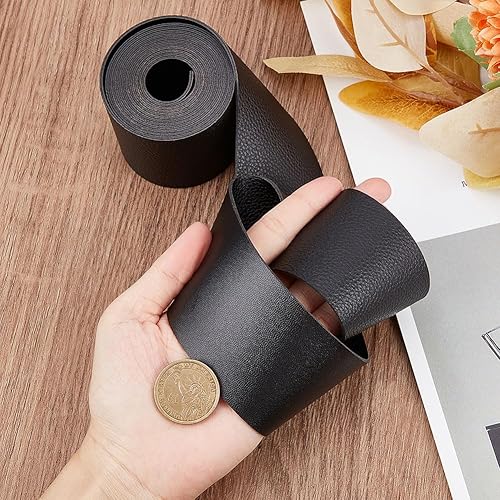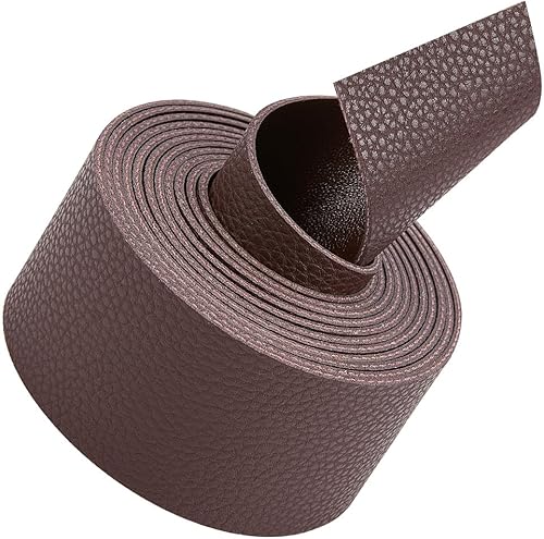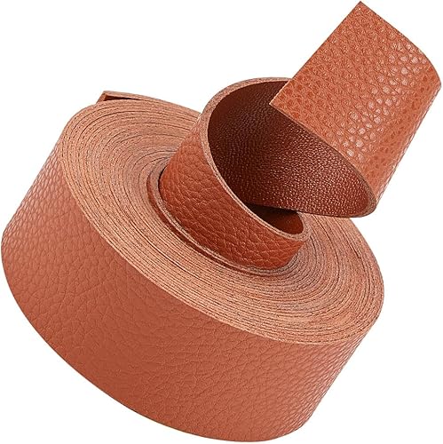 GORGECRAFT 2 m de Long Bandes de Ceinture en Cuir Double Face Texturé Motif Litchi Bracelet en Cuir 37.5 mm de Large Doux Brun Clair Simili Cuir Fournitures Plat Rouleau de Sangle pour Artisanat