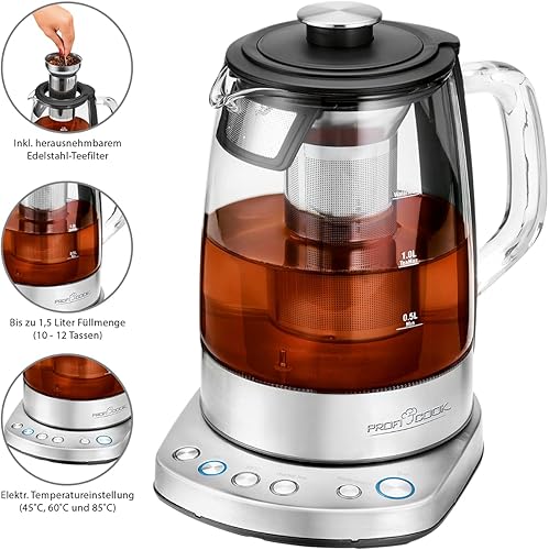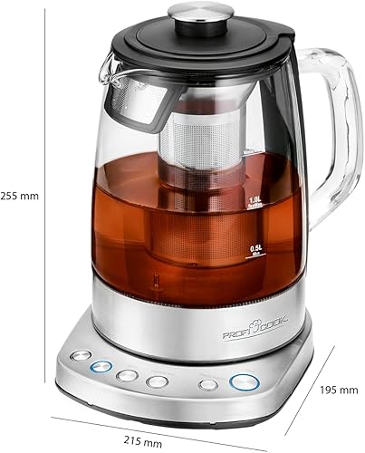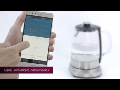 ProfiCook PC-WKS 1167 G, bouilloire 2 en 1 contrôlée par WiFi pour le thé et l'eau, application gratuite, réglage programmable de la température, boîtier en verre/acier inoxydable, 1,5 litre
