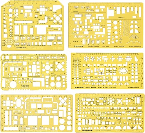 Traceease 6 Pièces, Plan De Maison- Design D'Intérieur Et Modèles Meubles De Cuisine/Lit/Bain- Outils De Dessin- Pochoirs Architecture