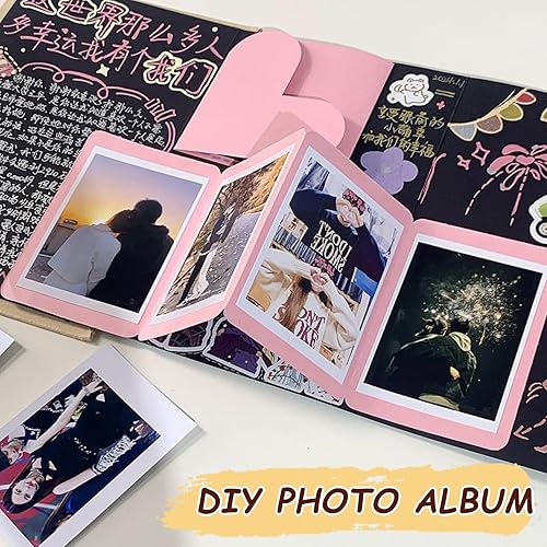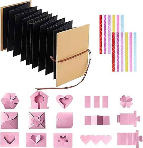Album photo en accordéon en papier, album de scrapbooking, album de voyage, carnet de notes de style accordéon, extensible et pliable avec 2 feuilles d'autocollants d'angle, 17 origami DIY (18 x 12