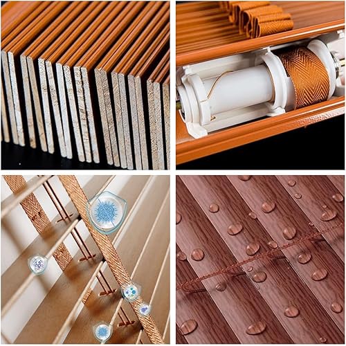 Store Plissé de Fenêtre Portes Store Chambre en Bois Lattes de 50mm Volets Persiennes Protection Vie privée(Light Brown)