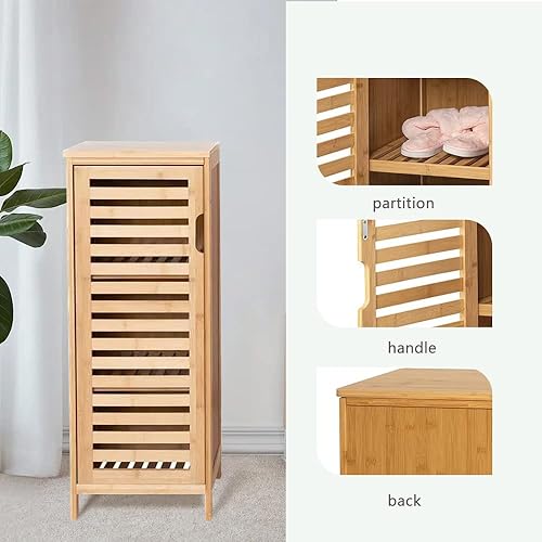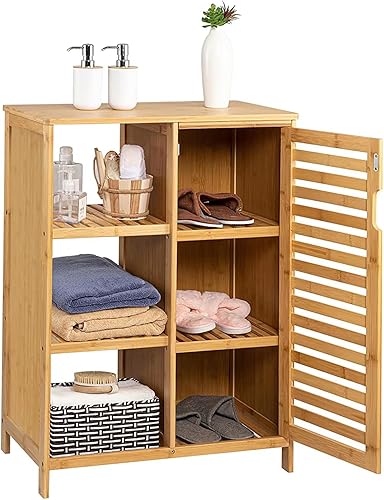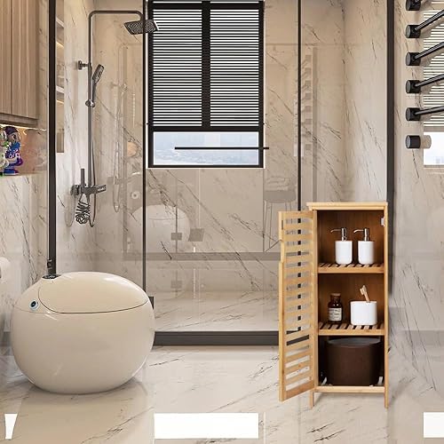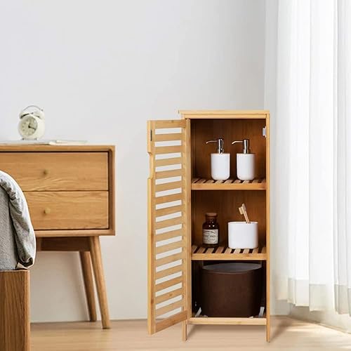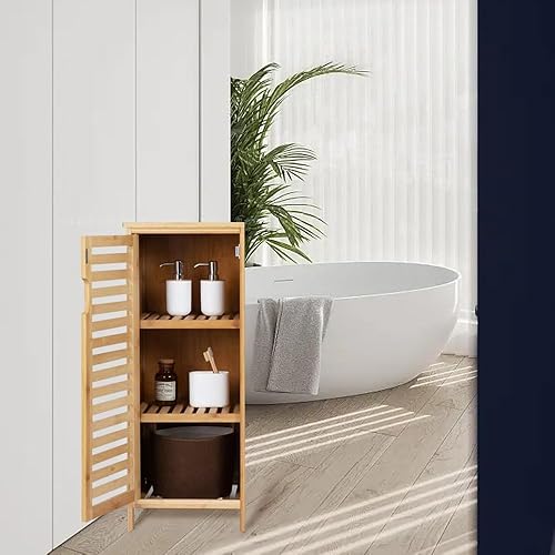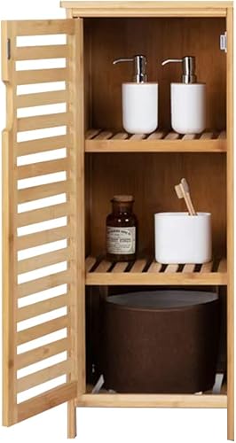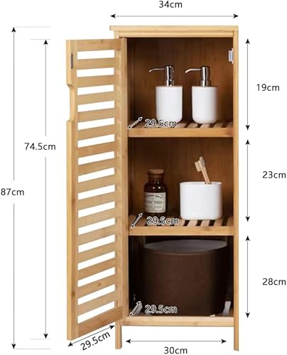 WAOHO Armoire de salle de bain en bambou - Buffet pour salon et salle de bain - Armoire de cuisine - Étagère sur pied (34 cm x 33 cm x 87 cm)