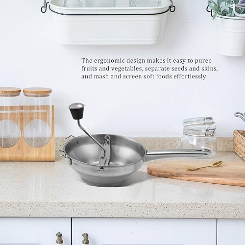 Juwacoo Moulin de cuisine en acier inoxydable - Parfait pour les soupes, les purées et les aliments pour bébé - Facile à nettoyer - Poignées antidérapantes - Outil de cuisine créatif pour la maison