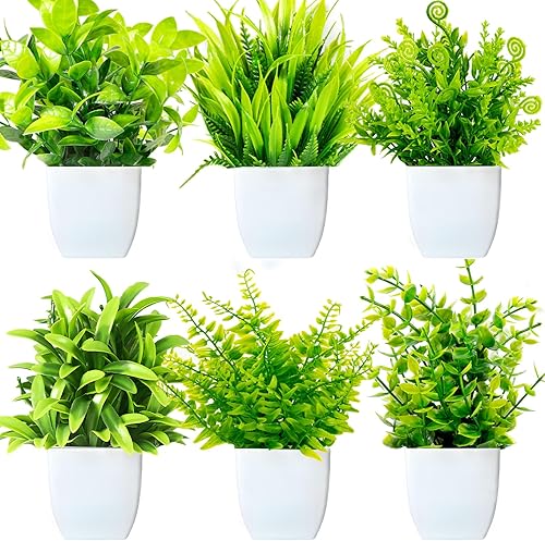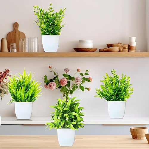 Purpledi 6 Pièces Mini Plantes Artificielles Verdure Plastique Faux Plantes avec Pot, Fausse Plante Interieur, Plante Artificielle pour Maison Salle de Bain Bureau Table Décoration D'intérieur B