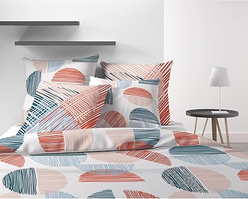 Les Ateliers du Linge Parure de lit 2 Personnes Halley avec Housse de Couette et taies d'oreiller Imprime 260 x 240 cm