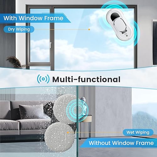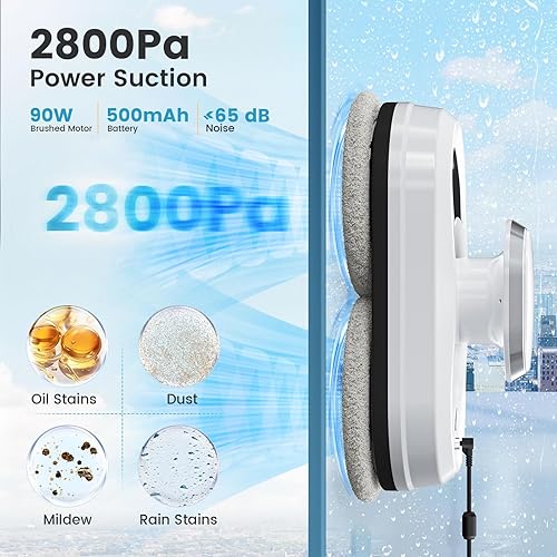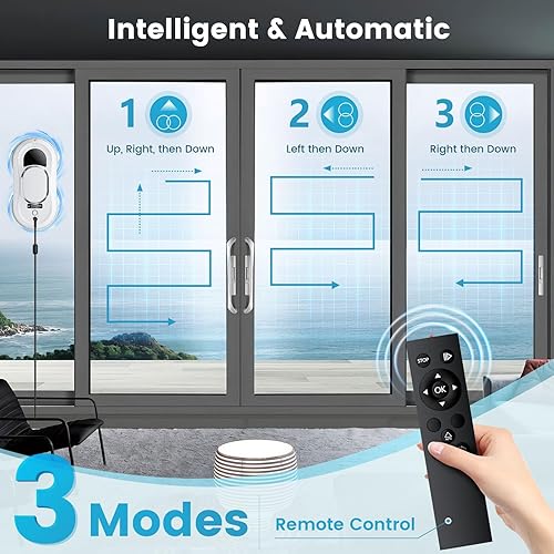 Tnamdan Robot Nettoyeur de vitres 3000 PA 0.35m/Min Lave vitre Electrique électrique Robot Laveur de Vitre Télécommandé Robot Lave vitre 3 Modes de Nettoyage Support Vocal en Anglais