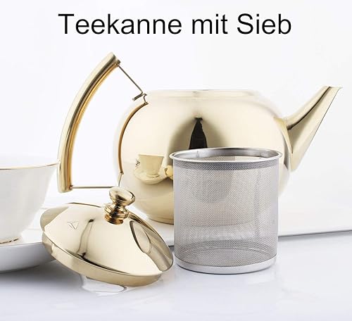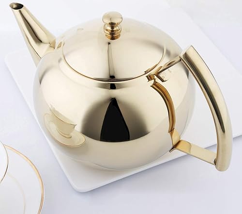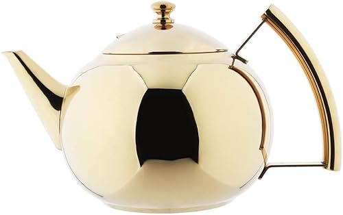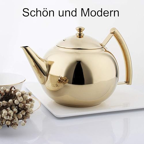 AMOMGard - Théière avec passoire amovible en acier inoxydable - Pour thé en vrac - Pour plaques à induction - Doré - 2 l